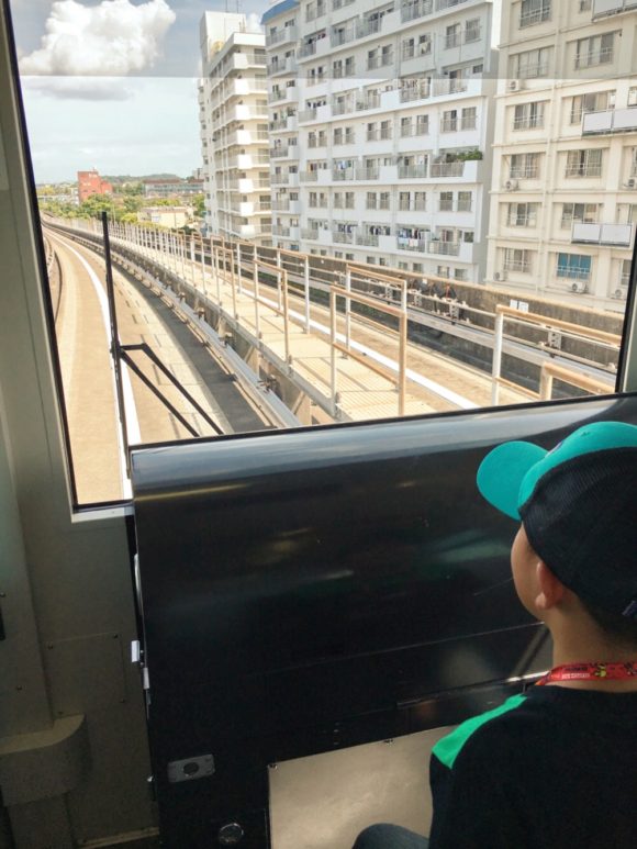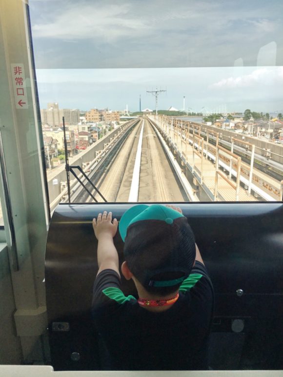 ▲シーサイドラインは、運転士のいない無人運転をしています。そのため先頭車両に乗ると、このように運転士気分を味わうことができます。この写真の左側にも席があります。ぜひ電車好きな子は体験してみてください!
