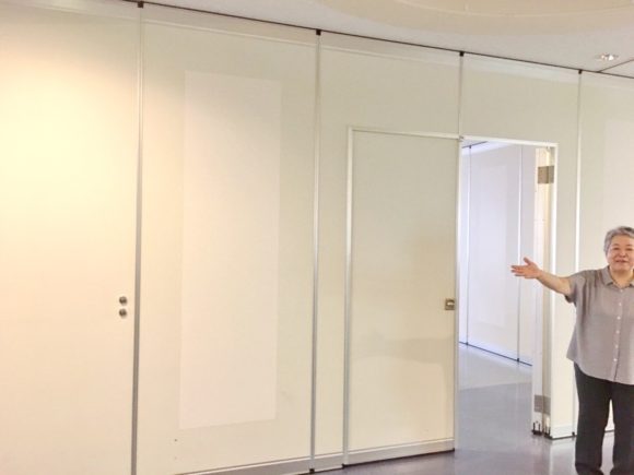 ▲ホールと喫茶コーナーは普段はパーテーションで区切られていますが、取り外しできるので繋げて広々と使うこともできます