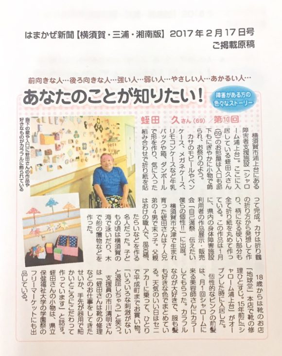 今までに4人のシャローム浦上台の利用者さんが「はまかぜ」に掲載されました。