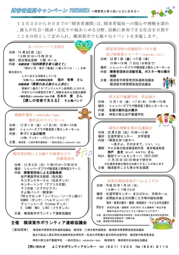 【お知らせ】今年もさまざまなイベントが目白押し!『障害者週間キャンペーン YOKOSUKA -障害者と寄り添いともに生きる-』2017.12.01-12.07