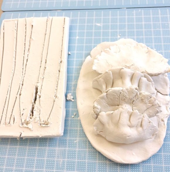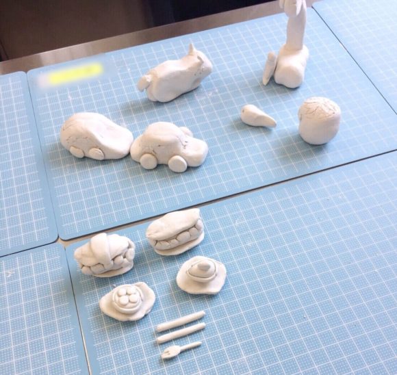 取材に伺った日が、ちょうど絵画教室の日ということで、午前中に行った粘土作品を見せていただきました。