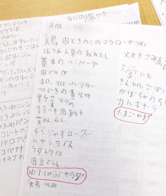 取材の翌日が調理実習の日ということで、メニューが決まっていました。