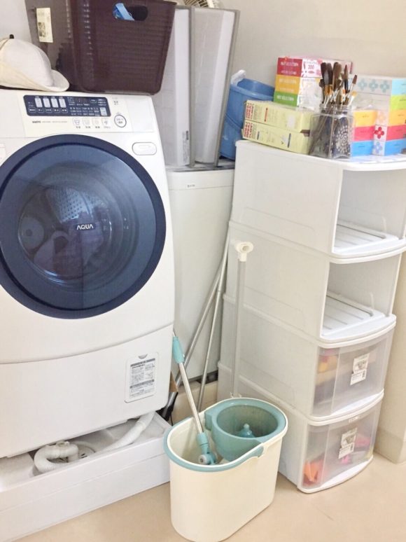 ▲こちらにある洗濯機は、作業着を洗うために使用しています。