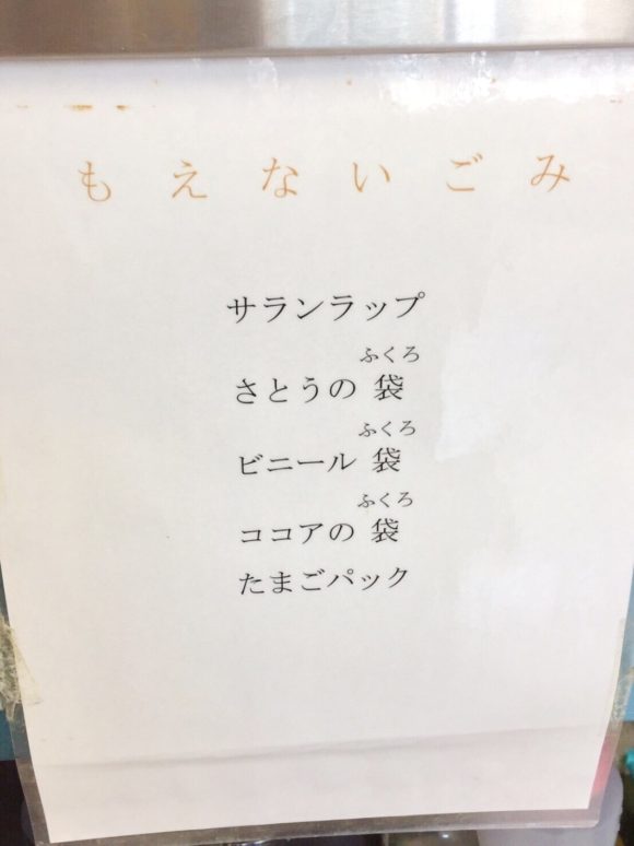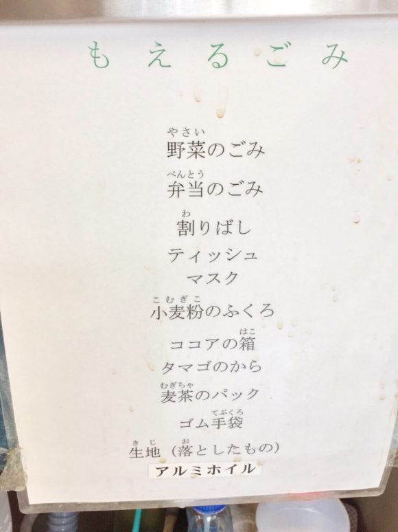 ▲視覚的にわかりやすいように、ゴミの分別表は目立つところに貼ってありました。