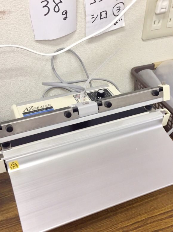 step.03 ラベルを貼ったラッピング袋にクッキーを詰め、熱シーラーを使って封をしていきます。