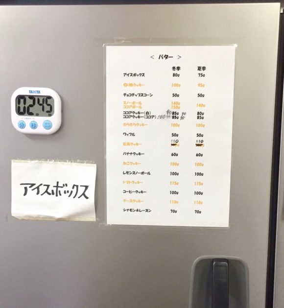 ▲冷蔵庫には夏季と冬季で異なるバターの使用量が、視覚的にわかりやすく掲示されています。