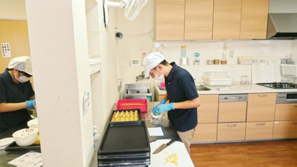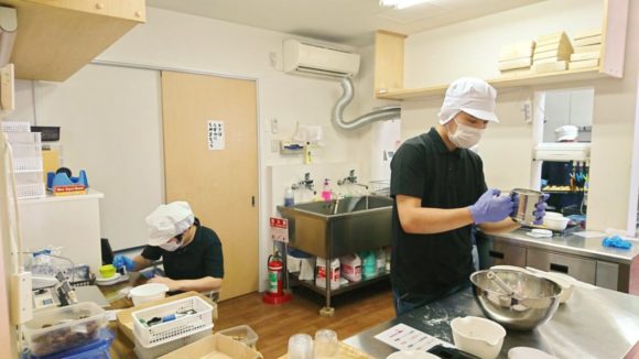 生地作りから焼く作業まで、全ての工程を利用者さんが担当します