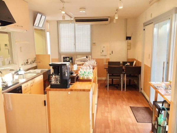というのも、全員で作業するには1Fだけではスペース的に足りない部分もあり、また利用者さん同士の相性もあるので分かれて作業することが多いです。 - 休憩スペースや洗面台、トイレなどがあります。