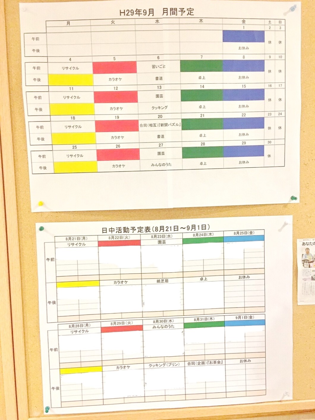 予定は事前に利用者さんに希望を聞き、日程を組みます。
