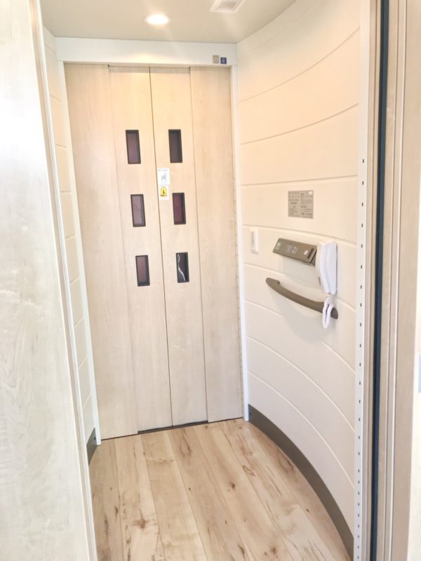 1階で乗りこむと、2階では反対側のドアが開くので、Uターンせずにそのまま直線で抜けられる仕様になっています。(写真左)