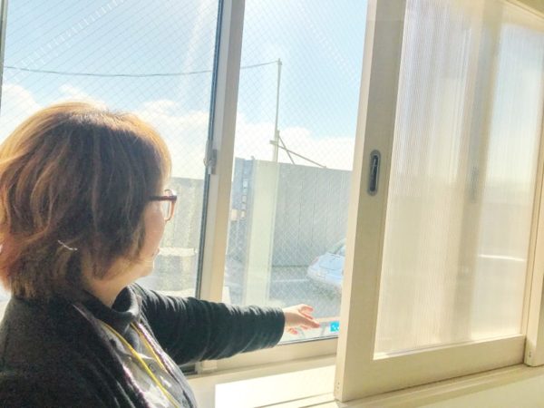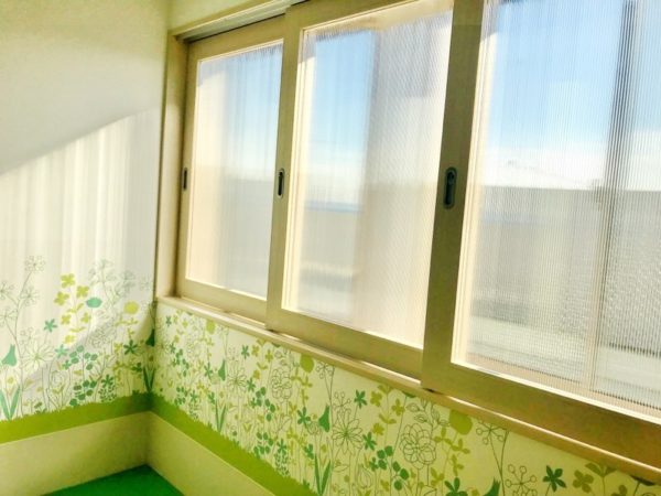窓の外は車道。音に過敏なお子さんの利用を想定して、二重窓で騒音をカット
