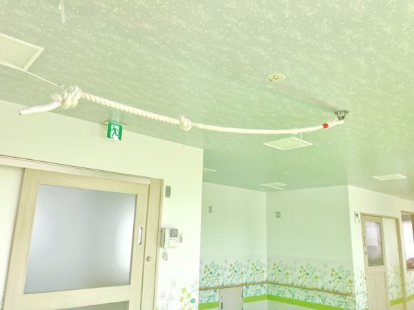 ▲子どもたちは慣れてしまって、今では天井までよじ登れるそうです。中には、足の親指でロープを掴んで登れる子もいるのだとか。