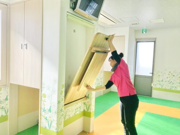 フロアの奥には、医療的ケアの必要なお子さんのための仕切られたスペース。