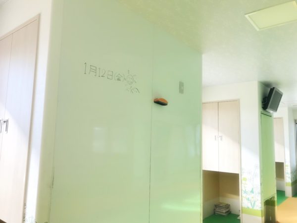 子どもたちのお絵かきスペースは、壁をホワイトボードにして対応。