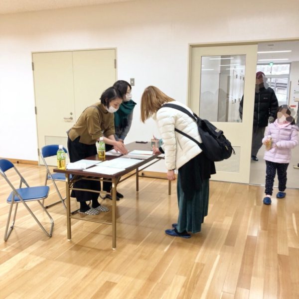 ▲今回の上映会開催の中心であるPTA委員さんが受付を担当。