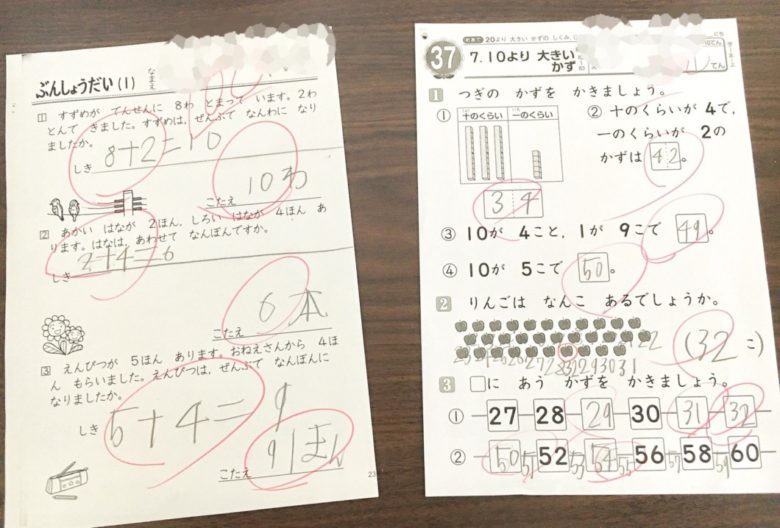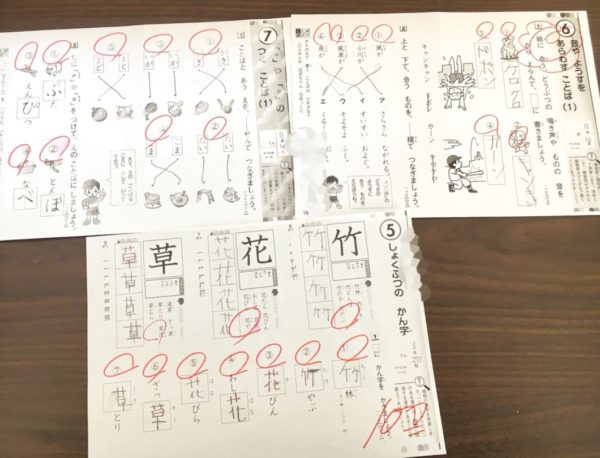 国語と算数のプリントは1枚の量が結構あったので、何日かに分けてやりました。保護者が丸つけを任されているということもあったので一緒に問題に取り組んだのですが、キャベツは自分の頭で考えながら最後まで集中してできました。