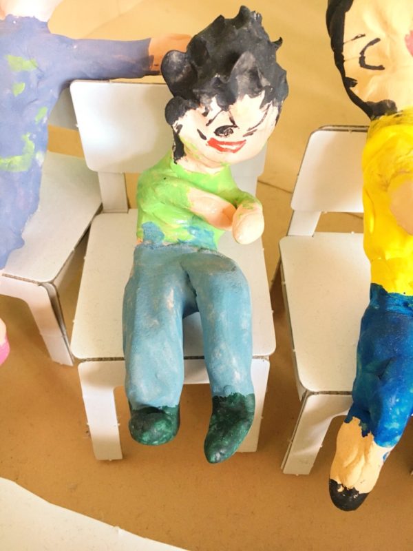 ▲人(自分)は椅子に座らせるような形にして、様々な工夫をしていました!ちなみにこの顔は、怒っている時の顔と言っていました…笑