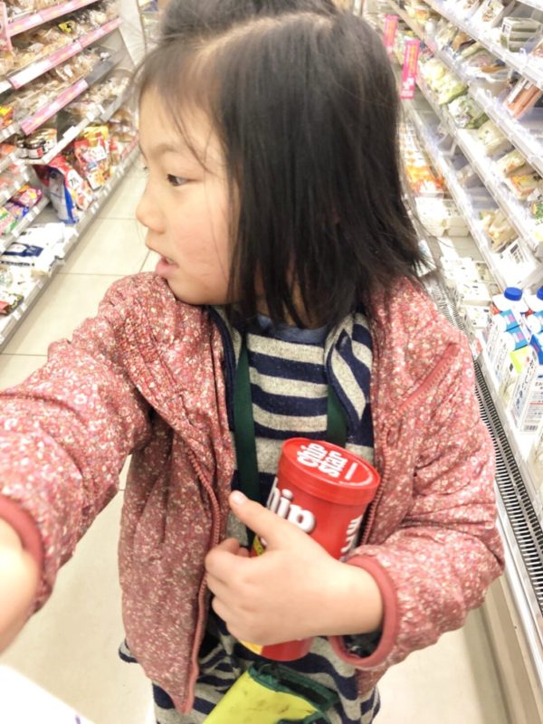 • 買い物は大好きなお菓子コーナーで欲しいものを手に取ってすぐ食べたがるので手に負えない…