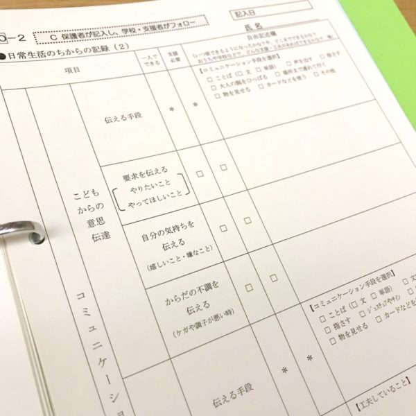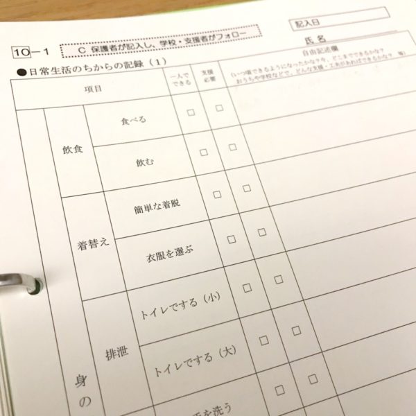 - 日常生活のちからの記録|身辺自立やコミュニケーション・社会性などを項目ごとに記入