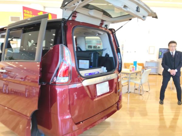 オーテック宮崎さん 今回体感いただいた2列目に車椅子を乗せるタイプだと、2列目のシートはない状態がデフォルトになるのですが、3列目に載せるタイプのセレナですと車椅子が乗らない場合は3列目を普通の座席シートとして使えます。