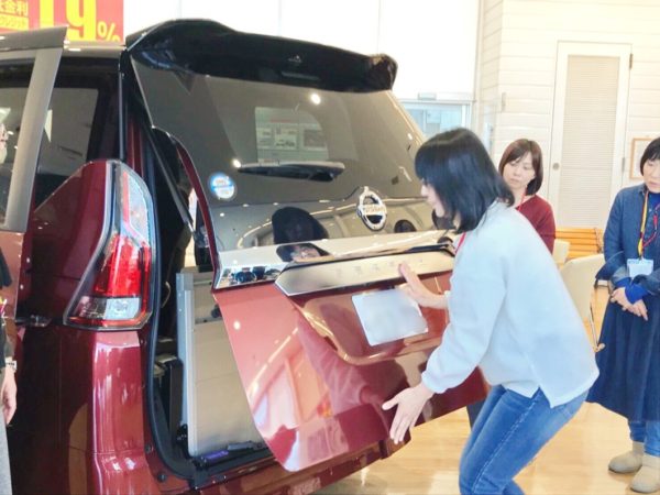 森井さん セレナには車いすの方が2列目に乗車できるタイプと3列目に乗車できるタイプとありますが、今回は2列目に乗車できるタイプを体感してもらいたいと思います。