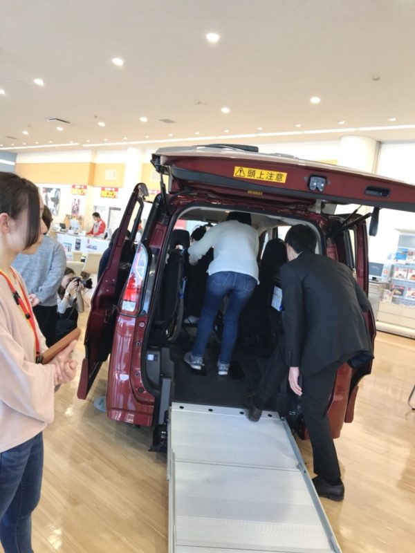 - 車椅子に乗った目線で、どれだけ車内が広く感じられるかを体感