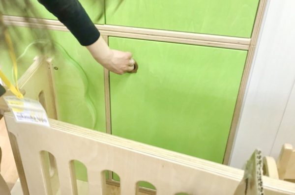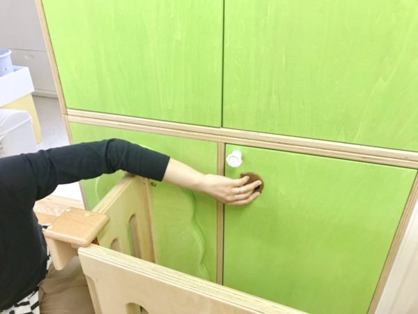 こちらのロックは、ゲートではなく、0歳児用のスペースの引き出しに施されていました。