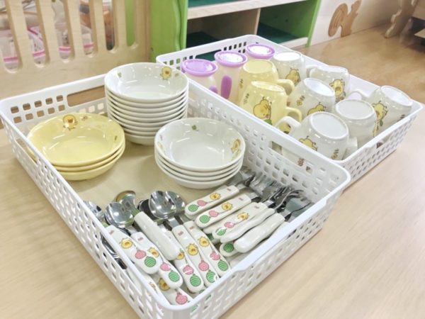 給食やおやつの時に使う食具は、すべて保育園で用意しています。