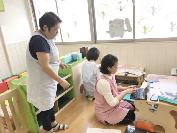 取材時にいらっしゃった先生方少人数の保育で目が行き届きやすいのと、堀ノ内駅に入ってくる京急電車を窓から覗くことができるので、子どもたちもとてもうれしそうです。パソコンはまだ慣れていませんが、いろんな年代の先生同士、それぞれの長所を活かしながらみんなで和気あいあいと保育にあたっています。
