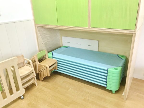 かさばる敷き布団が要らないため、お母さんが毎週ごとに持ち帰るのは敷パット(コット専用のパットも購入可能)とタオルケット・毛布類のみ。忙しい出勤前の登園時に大きな荷物を持ち運ばなくても良いのはありがたいですね。