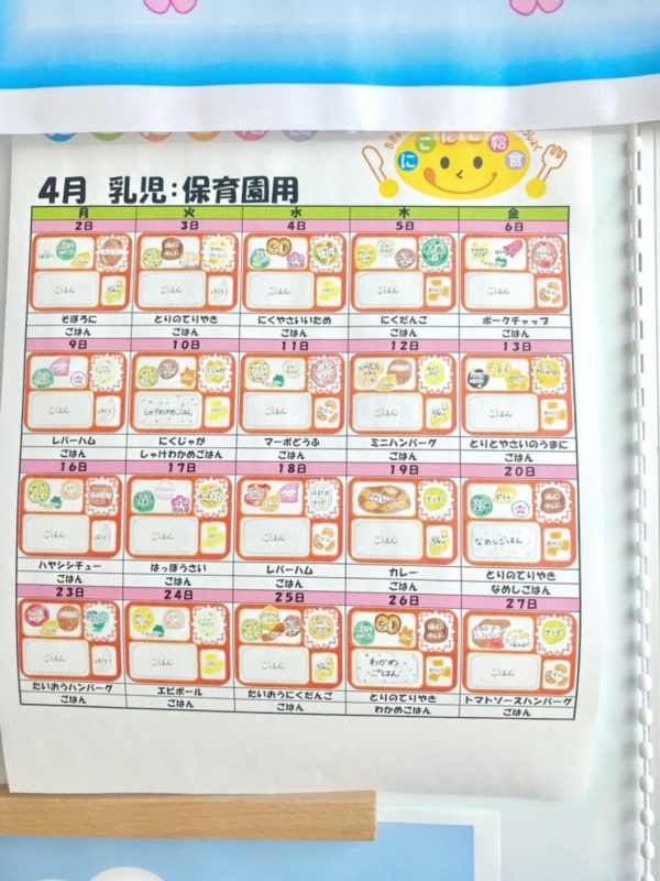 ▲こちらが月の献立。