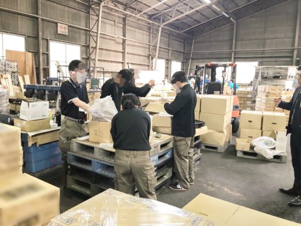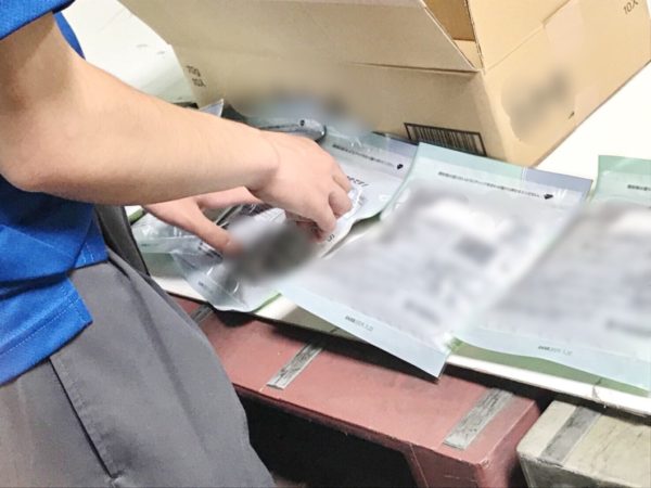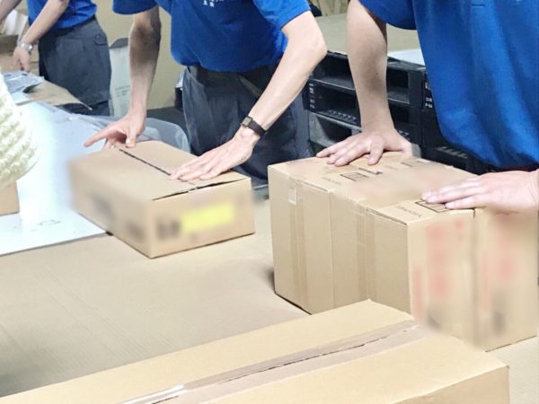 ▲シールを貼り終え箱に戻していく作業。チームで効率よく、助け合いながら進めています。