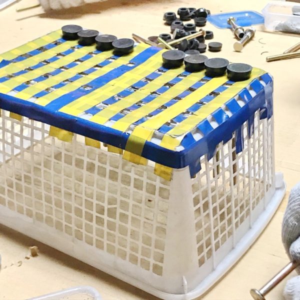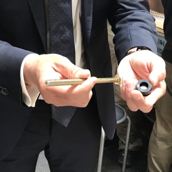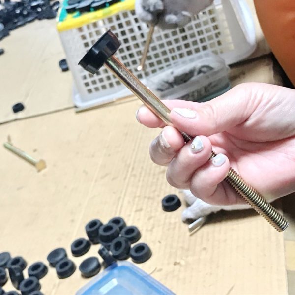 ▲金属の棒を黒い輪の中にはめ込むという単純な作業ですが…簡単そうに見えて実は、コツと力がいります。