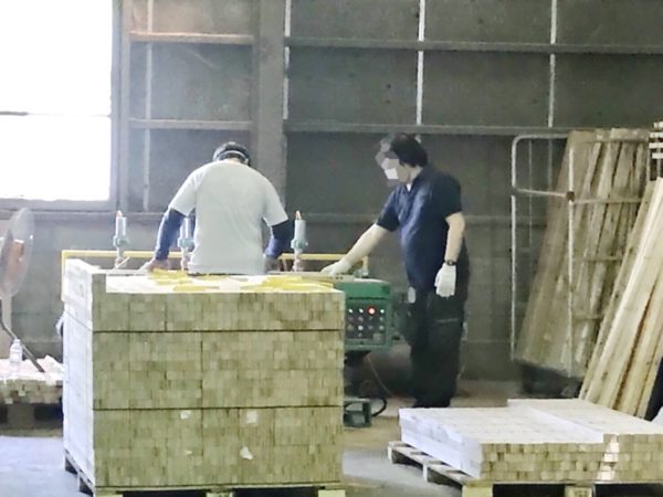 ▲こちらのお2人は、マンションの床下に使われる木材加工を担当。機械を使う危険な作業も、今では安心して任せることができています。
