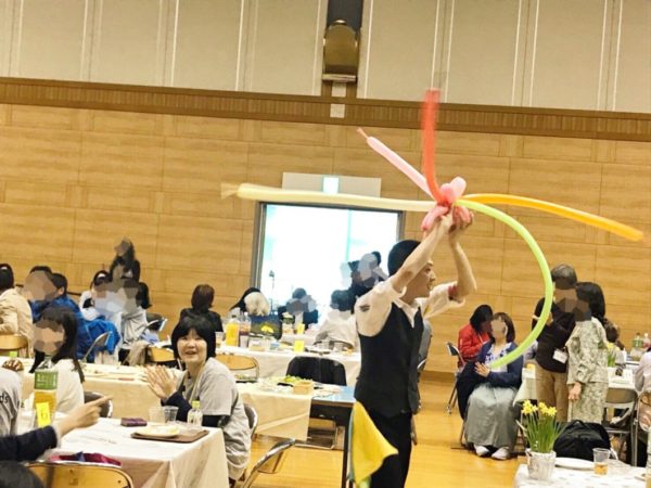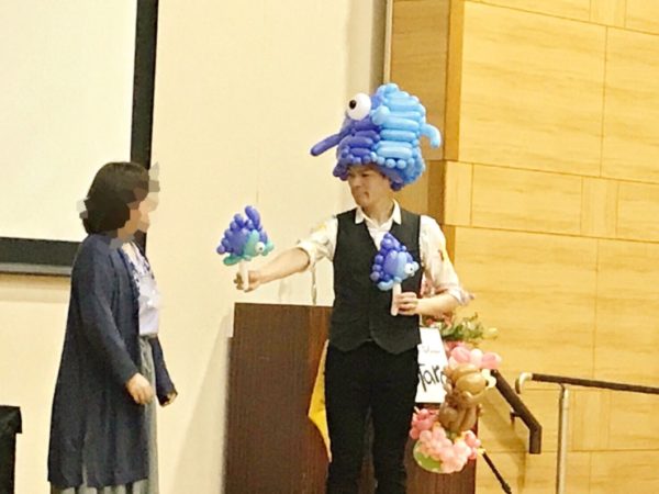 ▲会場内を縦横無尽に駆け回りながら、バルーンアートを披露していきます。