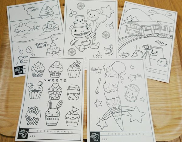 男の子も女の子も楽しめるオリジナルぬり絵5枚セットです。