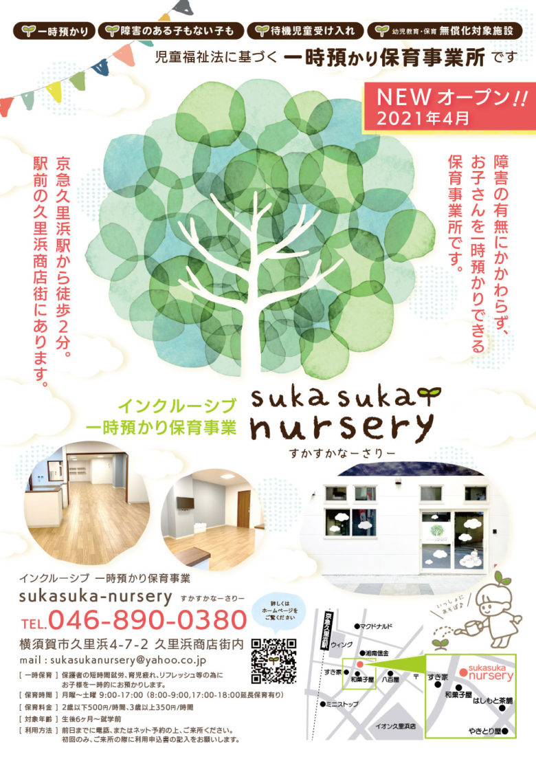 ご予約、お問い合わせはsukasuka-nurseryHPにて受け付けております。