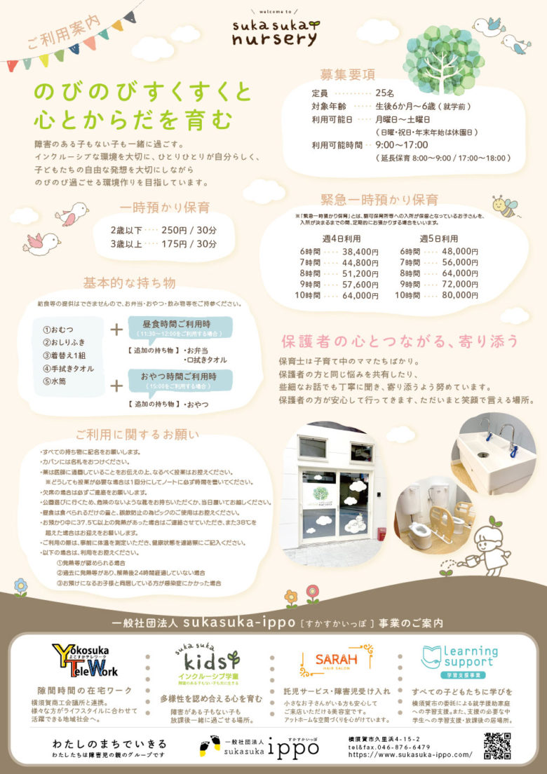ご利用料金など詳しいご案内はsukasuka-nurseryHPをご覧ください。