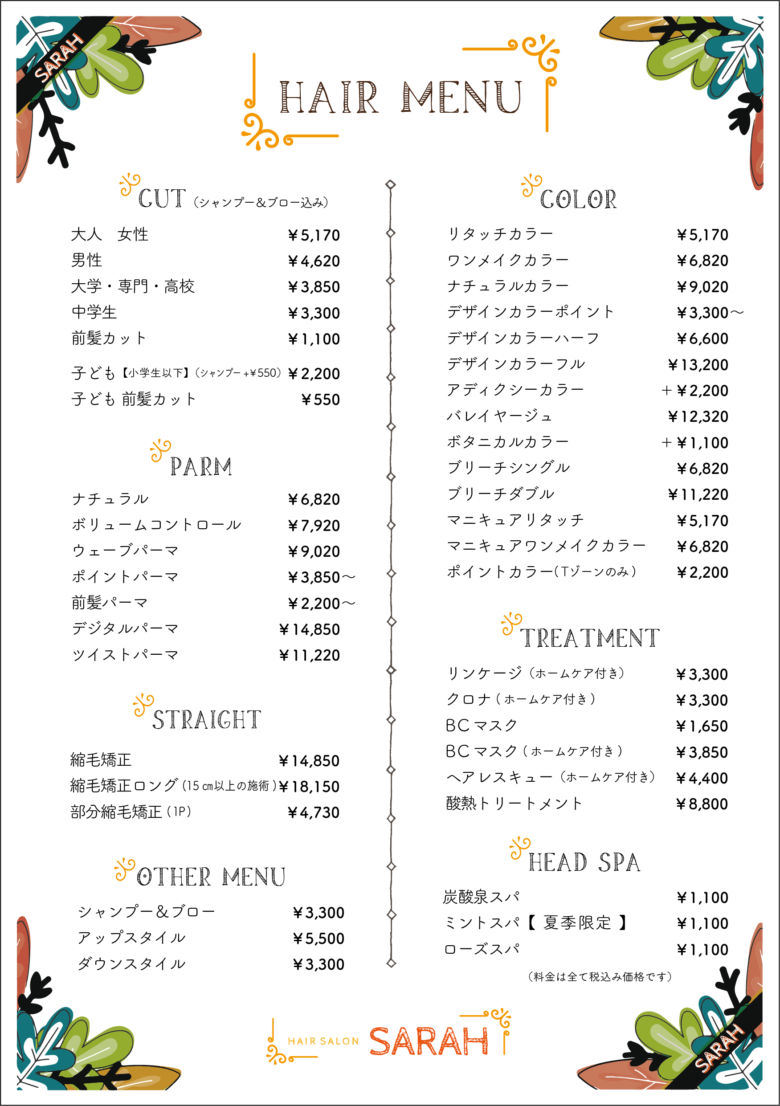 mail/ sarahhairsalon@yahoo.co.jp