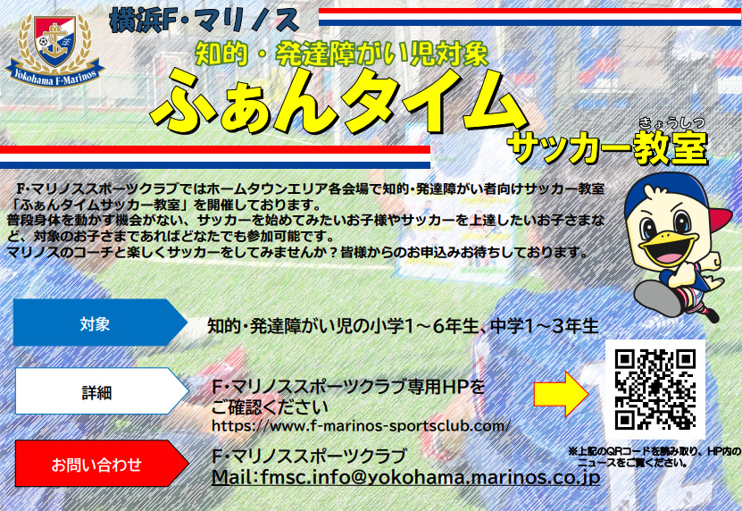 F・マリノススポーツクラブより、知的・発達障がい児を対象としたサッカー教室のお知らせです!
