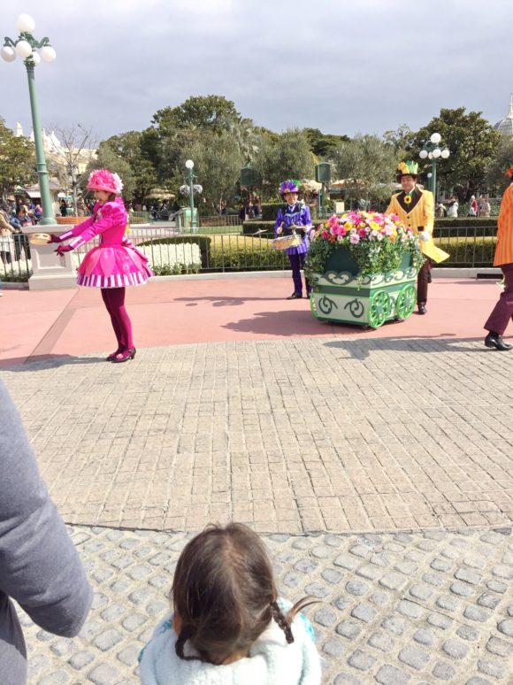 あらゆるところでこうしたミニショーをやっていましたが、本来は混雑した園内のちょっとした待ち時間を楽しく過ごせるようにということなのでしょうが、我が家のうららさんは一度見たミニショーでも何度でも見たがる。