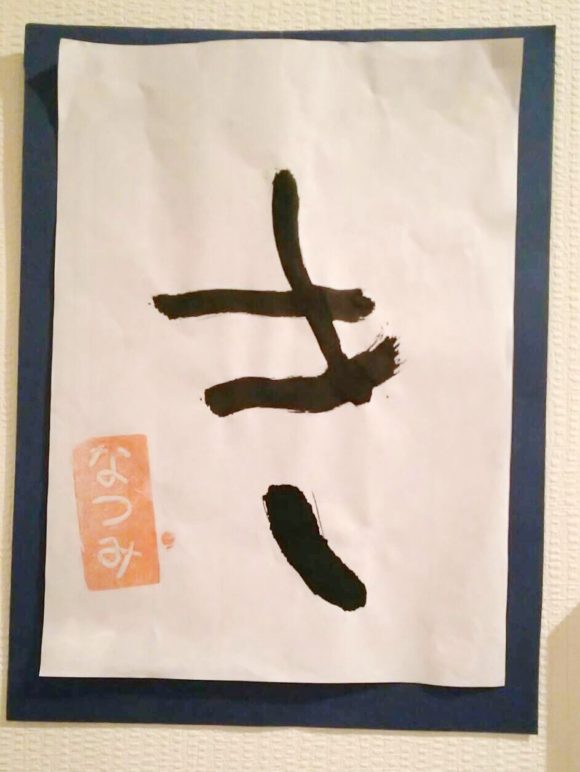 ▲1年生の冬の作品。先生に聞いてみると、たまたま「き」が書けたそうです。