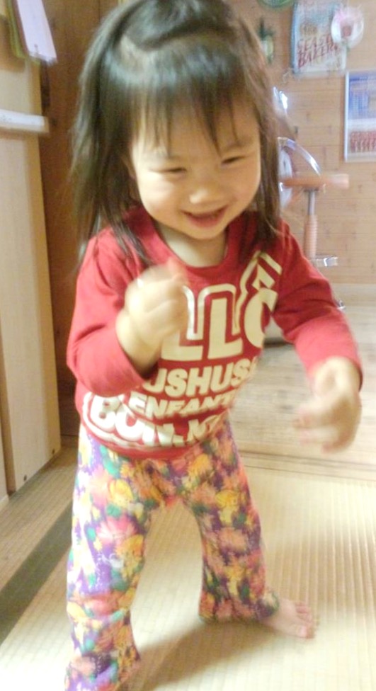 実は私の誕生日でもあるんですが、この日、うららがはじめて独歩をみせてくれました。うらら 2歳5ヶ月でした。